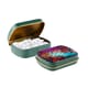 Mini hinge tin frosted green with a gold interior and approx. 23 grams of sugar free mints. Features full color printing and includes ingredient sticker and seal.