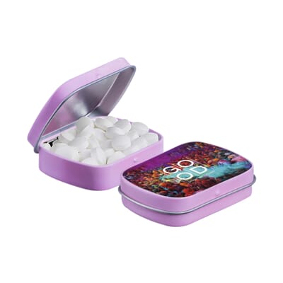 Ontdek het ultieme verfrissende genot met ons welbekende mini scharnierblikje gepersonaliseerd doormiddel van een full colour bedrukking! Gevuld met de meest verleidelijke Nederlandse pepermunt, is dit kleine blikje de perfecte metgezel voor onderweg, op kantoor of gewoon voor een snelle opfrissing. Kies uit vele leverbare kleuren.